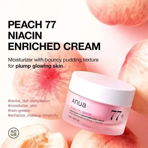 Anua Peach 77% Niacin Enriched Cream is a deeply hydrating, brightening and skin-enhancing moisturizer, perfect for all skin types, including sensitive and mature skin. It is specially designed for those who strive for an “ice cream skin” look and want an even, peach skin as a perfect base for makeup.