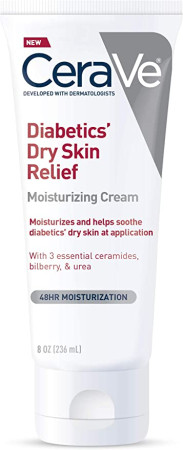 Developed with dermatologists, CeraVe Diabetics’ Dry Skin Relief Moisturizing Cream moisturizes and helps soothe diabetics’ dry skin at application. This formula, with Bilberry and Urea, helps attract and retain moisture for all day hydration. Also formulated with three essential ceramides to help restore and maintain your skin’s natural protective barrier. This moisturizing cream for diabetic skin provides soothing 48-hour hydration for diabetics’ dry skin.