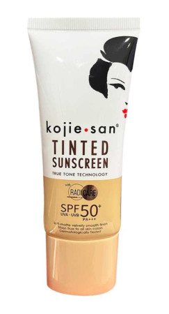 Shield your skin from harmful UV rays while achieving a flawless complexion with Kojie San Tinted Sunscreen SPF50+ 50gm.