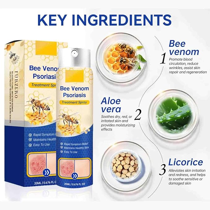 Experience the power of nature with our Bee Venom Psoriasis Treatment Spray, specially formulated to soothe, hydrate, and restore skin affected by psoriasis, eczema, and dryness. This potent blend combines bee venom, known for its anti-inflammatory and regenerative properties, with willow bark extract, licorice, and aloe vera to calm irritation, reduce redness, and promote healthy skin renewal.