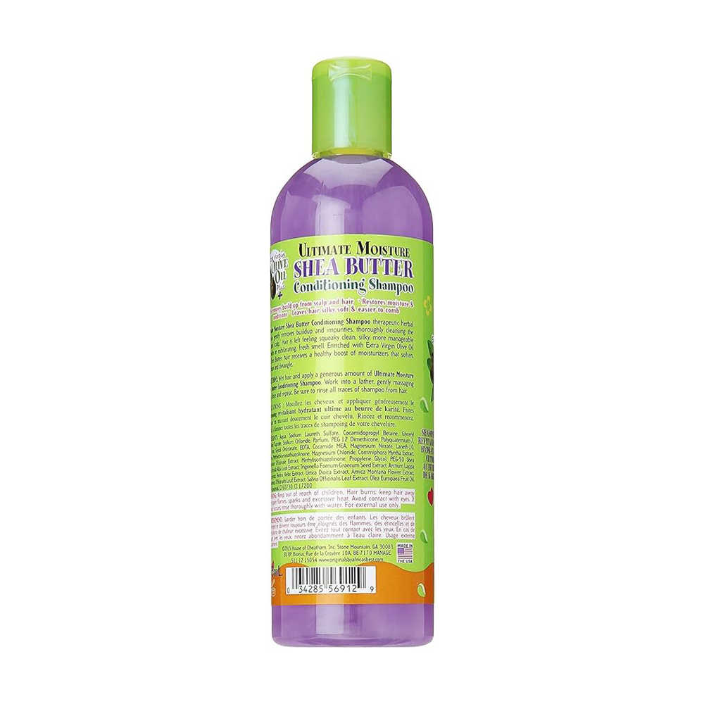 Africa’s Best Kids Organics Ultimate Moisture Shea Butter & Extra Virgin Olive Oil Conditioning Shampoo 355 ml, kid approved scent, gently removes build up from hair and scalp, leaves hair silky soft & easier to comb, rest ores moisture & conditions Oragani Cally.