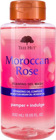 Our Tree Hut Moroccan Rose Foaming Wash contains Moroccan argan oil, which is known to help balance skin, improve elasticity, and help hydrate skin with lipids, fatty acids, and vitamin E. It also contains rosehip oil, which helps to visibly refine skin’s texture and promote a radiant glow. Natural shea butter is known to deeply moisturize, nourish, and soften dry skin while helping to promote elasticity.